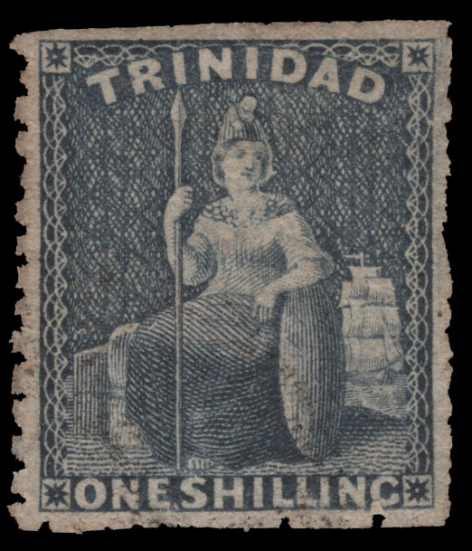 TRINIDAD, 1861, 1sh PURPLISH BLUE ROUGH PERF