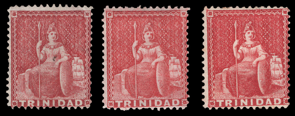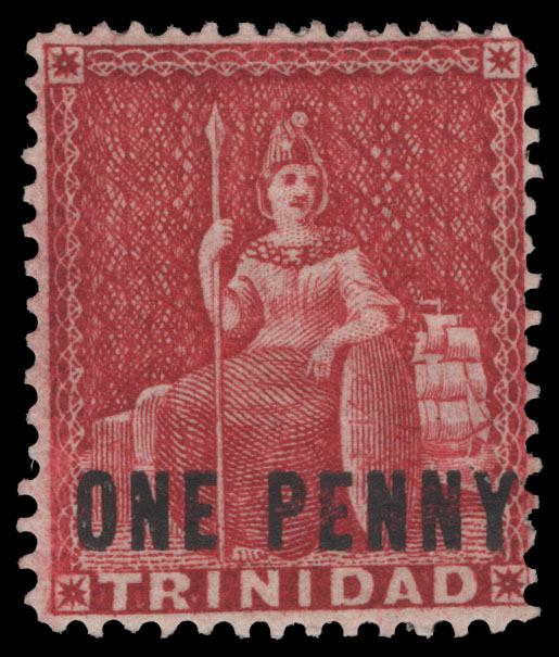 TRINIDAD, 1876, (1p) CARMINE (SHADES) PERF