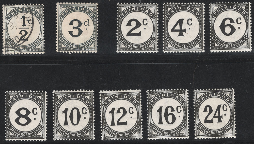 Trinidad #J1 used, J4 mint, Trinidad & Tobago #J9-J16 mint, fine-very fine, cat. $154.25 (Image) |