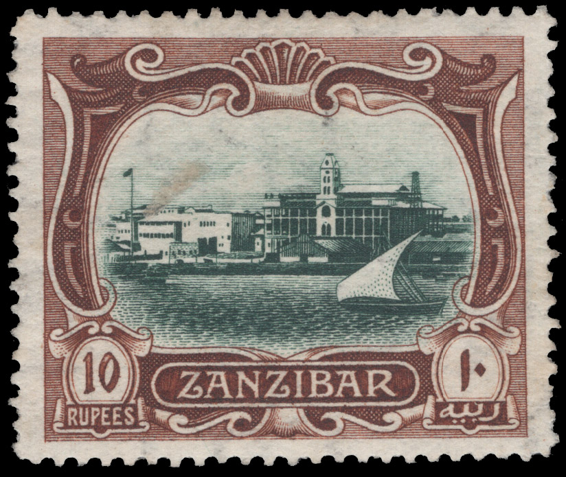 ZANZIBAR, 1908, 10r BROWN & DARK GREEN