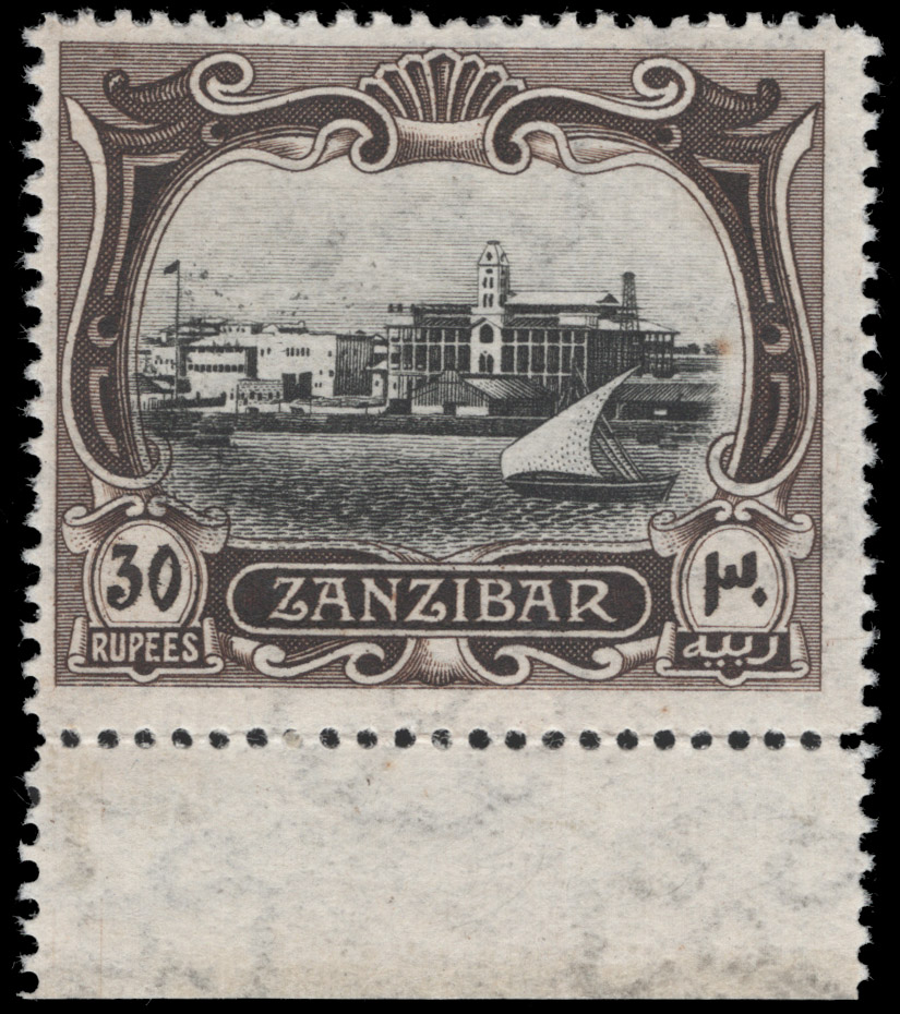 ZANZIBAR, 1913, 30r DARK BROWN & BLACK WMK