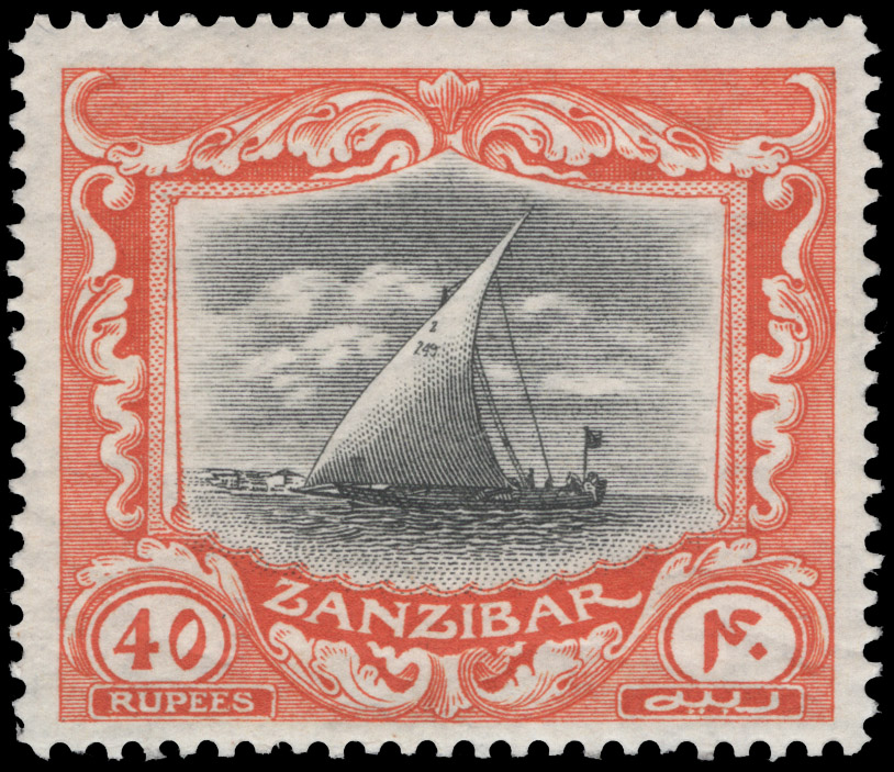 ZANZIBAR, 1913, 40r ORANGE & BLACK WMK