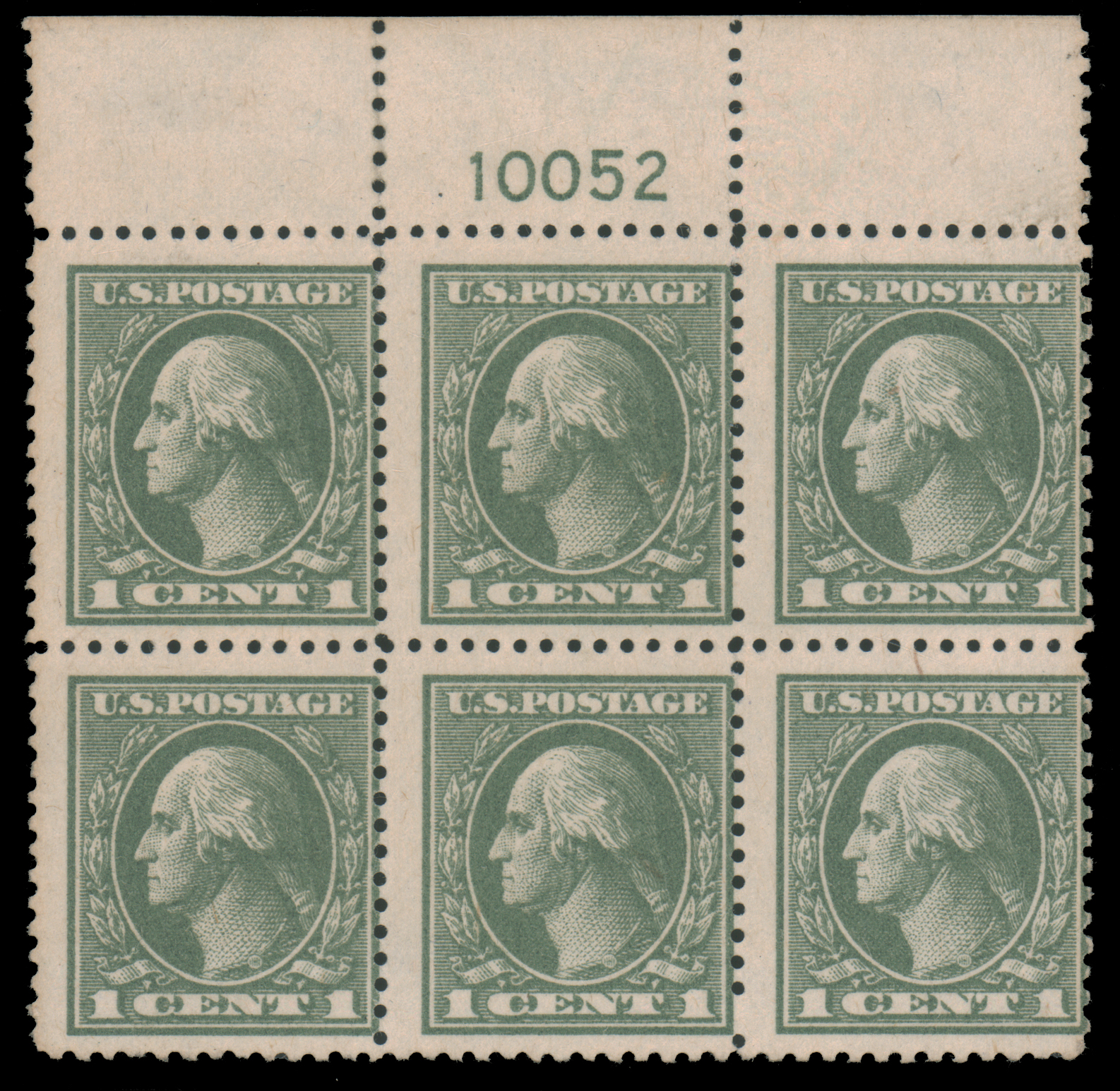 1919, 1c GRAY GREEN PERF 12½ TOP PLATE