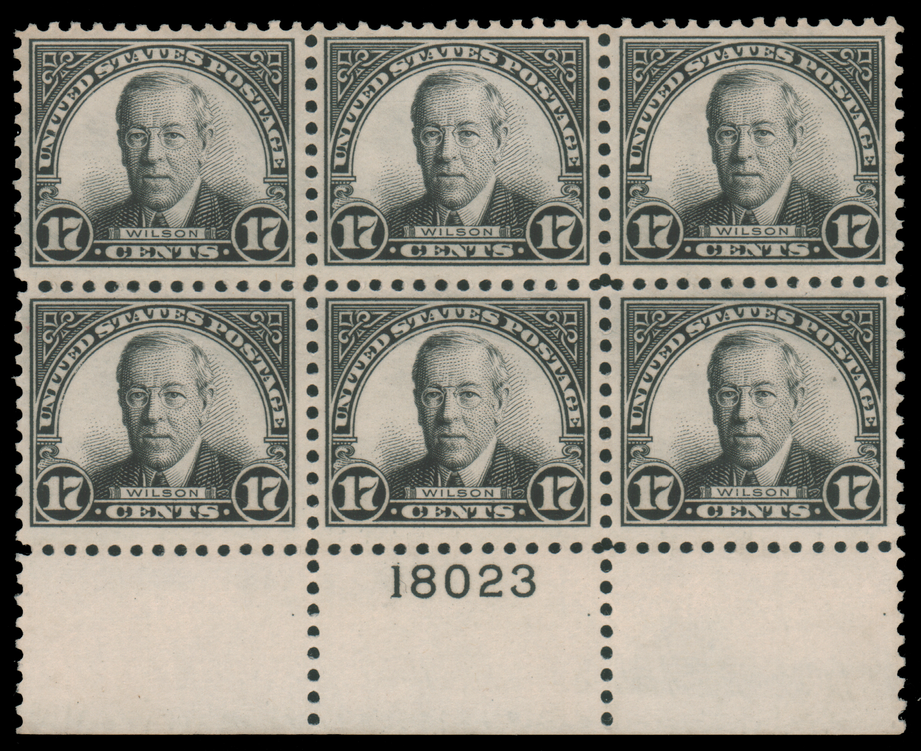 1925, 17c BLACK BOTTOM PLATE #18023 BLOCK OF