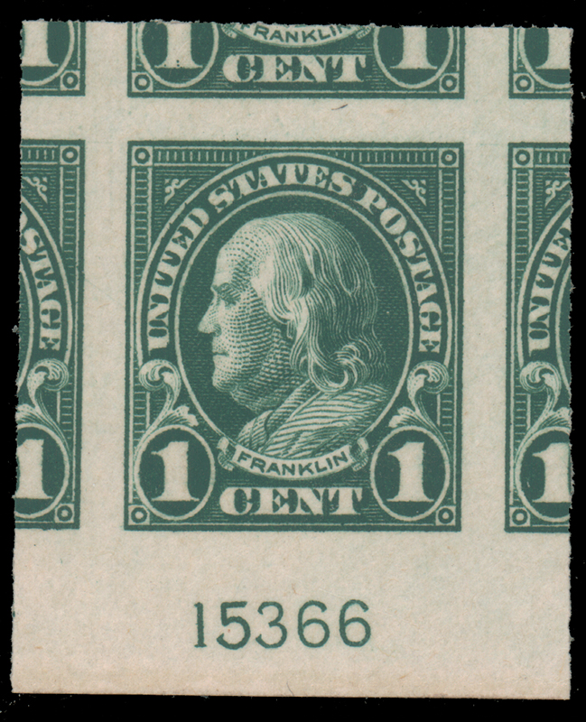 1923, 1c GREEN IMPERFORATE PLATE #15366