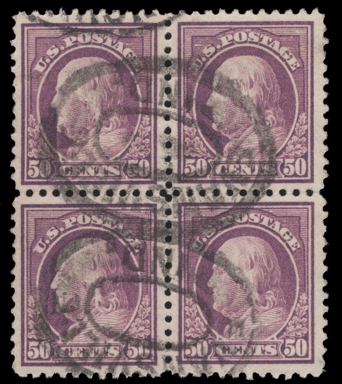 1917, 50c RED VIOLET BLOCK USED, #517,