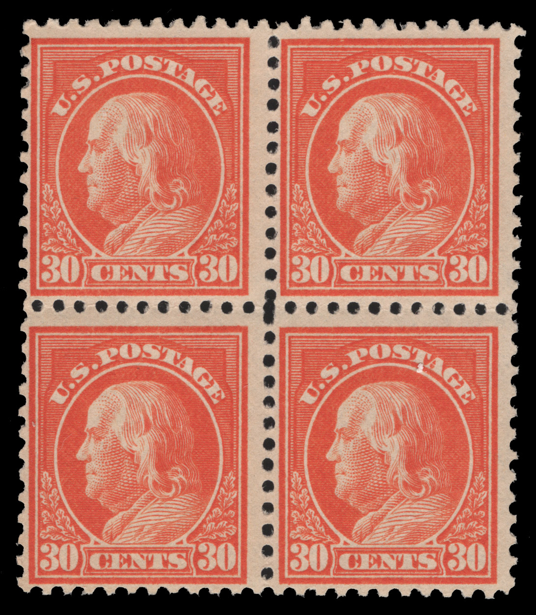 1917, 30c ORANGE RED BLOCK NH, #516,