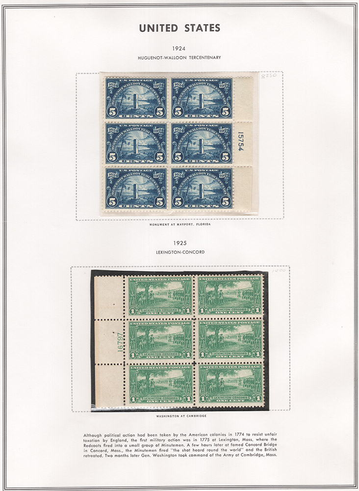 #614-16, 617-19, fresh, 1c and 2c Huguenot-Walloon natural gum bend, fresh and well-centered plate blocks, fine-very fine, cat. $947.50 (Image) (Scan1) (Scan2) (All Scans)