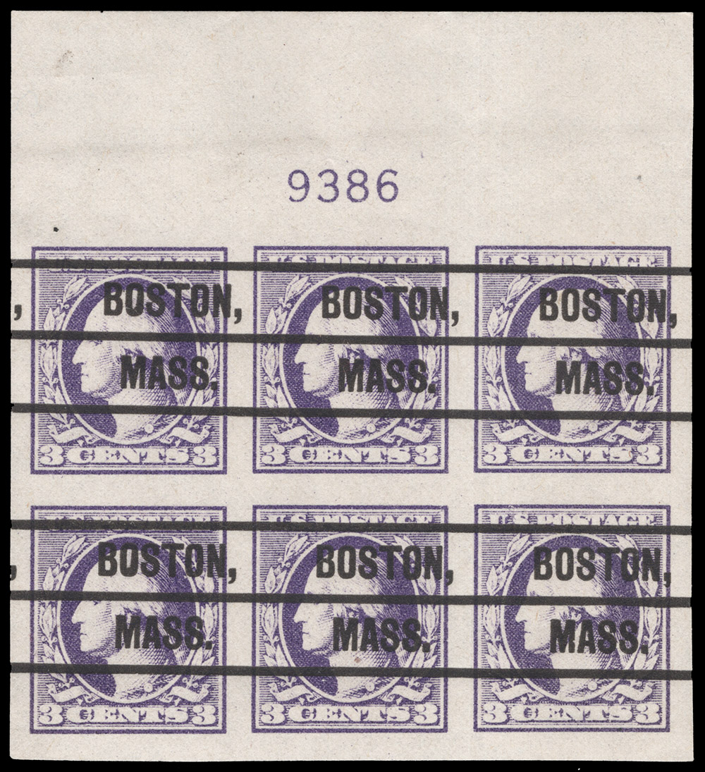 #9386 BLOCK OF SIX WITH PRE-CANCEL, #535, never hinged, very fine (Image) |