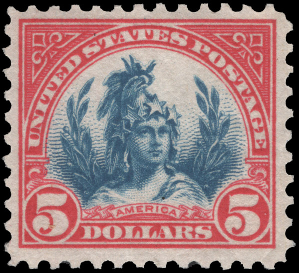 1923, $5 CARMINE & BLUE NH, #573, fresh