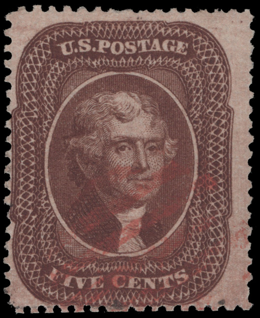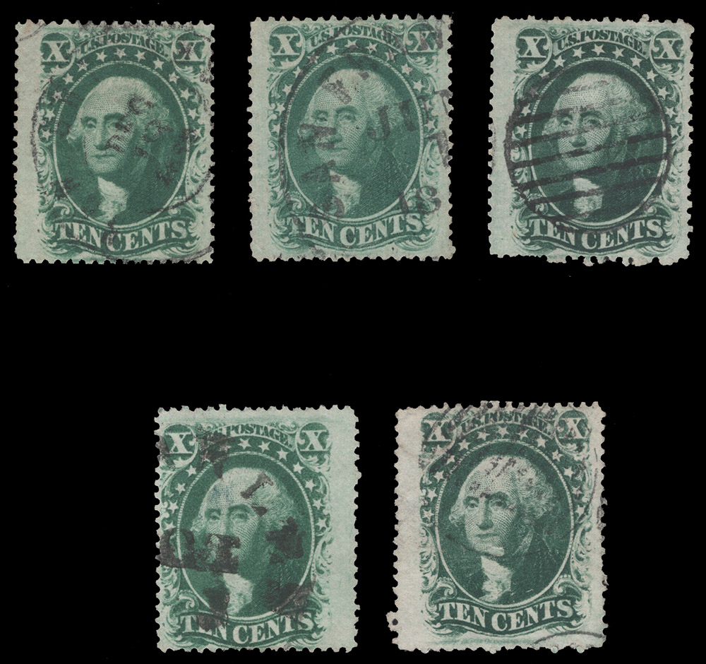 or so sound 5-cent stamps of all different shades extant. with 1972 APS and 2000 PSE cert., cat. $30000.00 (Image) (Scan1) (Scan2) (All Scans)
