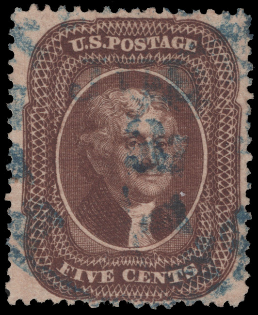 1860, 5c BROWN TYPE II WITH BLUE BALTIMORE