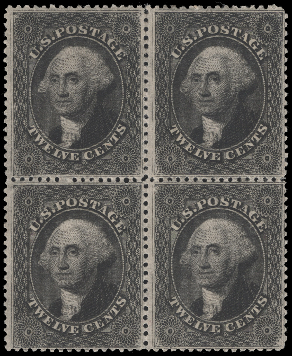 1860, 12c BLACK PLATE 3 BLOCK OF FOUR