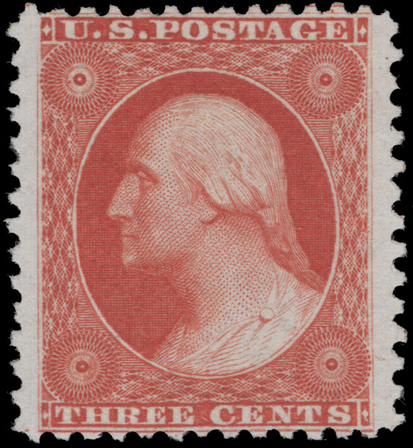 1875, 3c SCARLET OFFICIAL REPRINT UNUSED