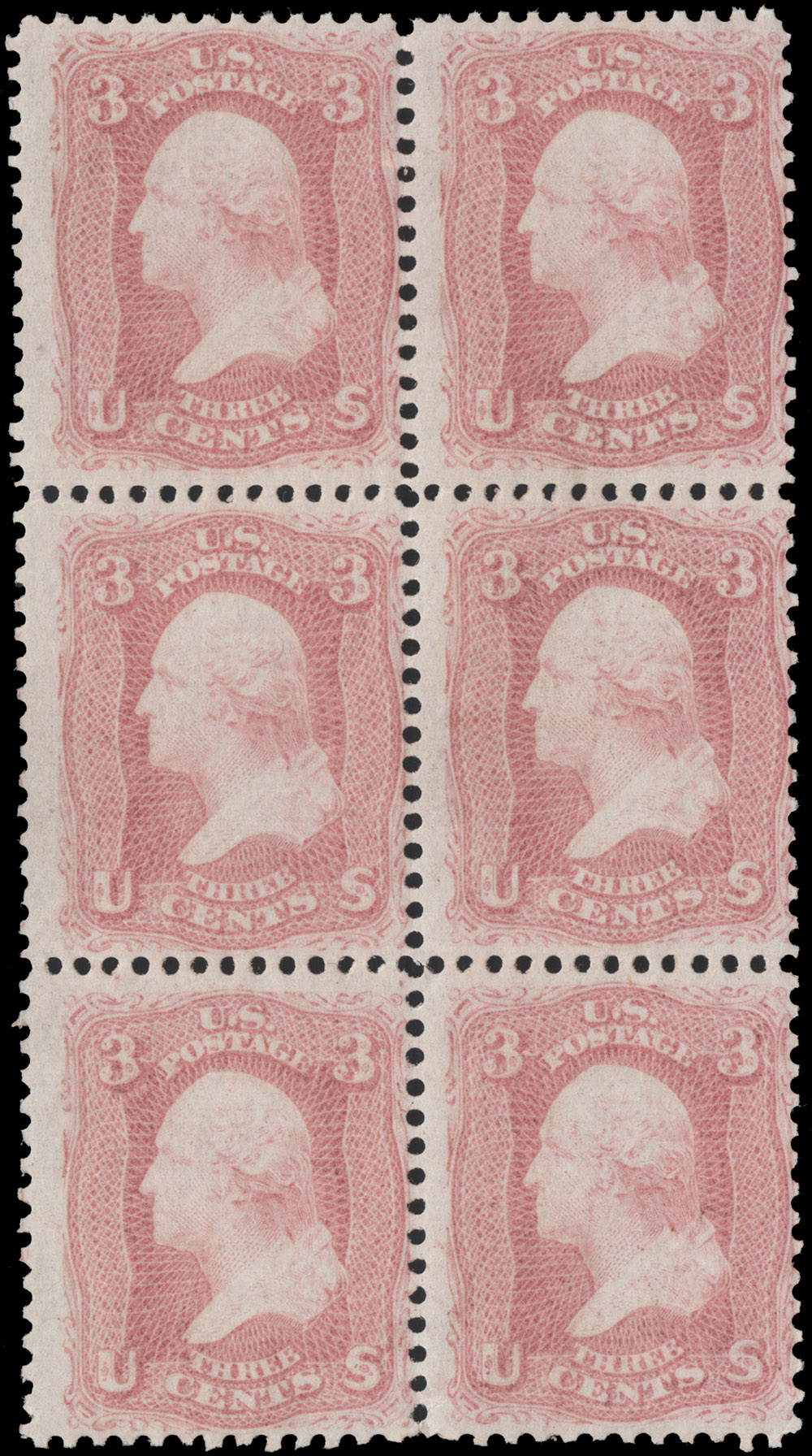 1861, 3c ROSE BLOCK OF SIX MINT NEVER