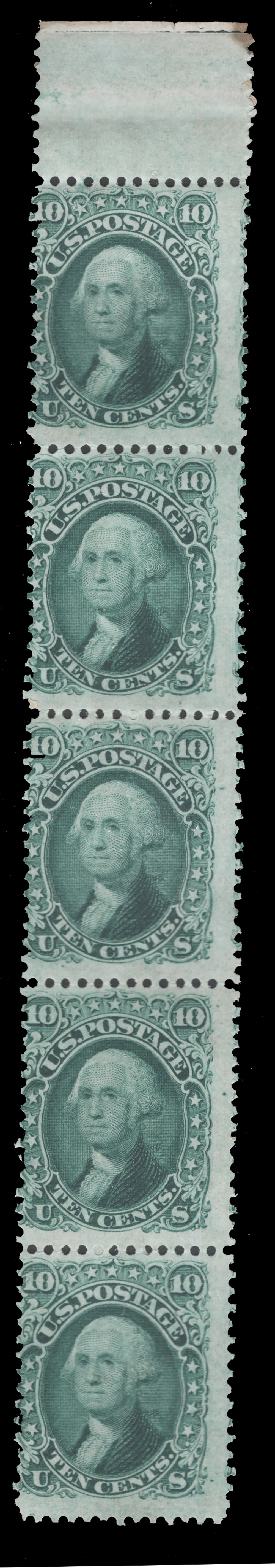 1861, 10c GREEN TOP MARGIN VERTICAL STRIP OF