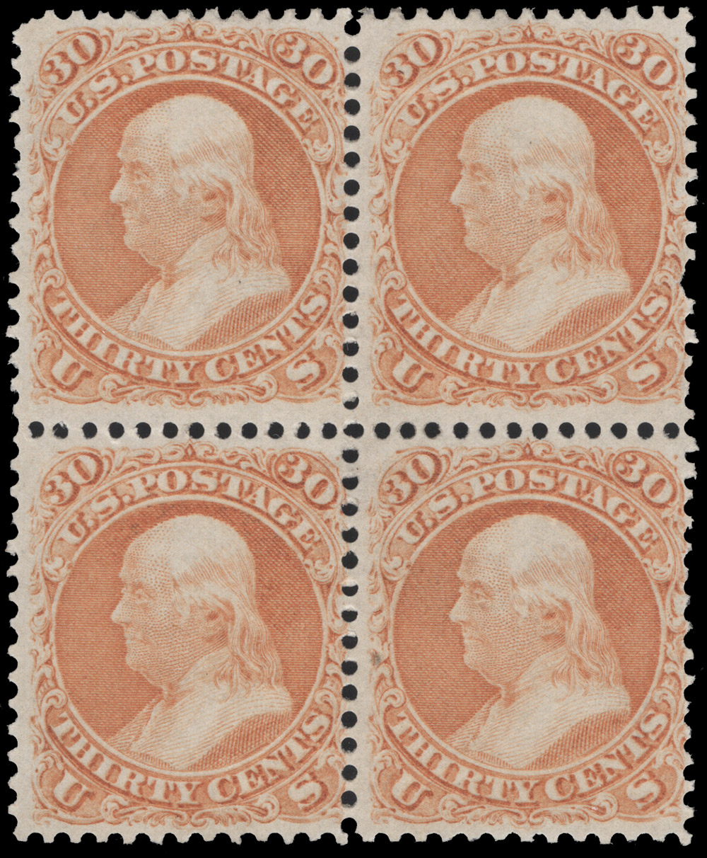 1861. 30c ORANGE BLOCK OF FOUR UNUSED,