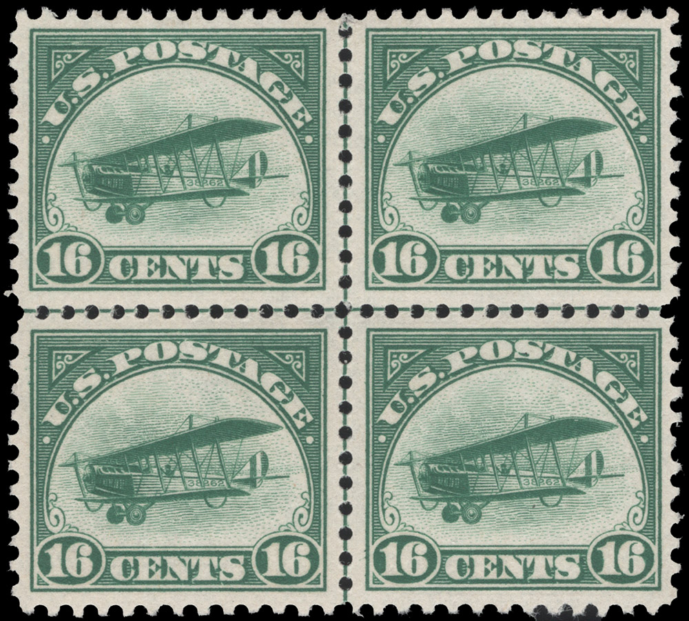 1918, 16c GREEN AIR POST CENTER LINE BLOCK
