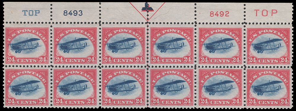AND PLATE #8493/8492 BLOCK OF 12 MINT NEVER HINGED, #C3, well-centered, natural gum skips, very fine, cat. $2,000.00 (Image) |