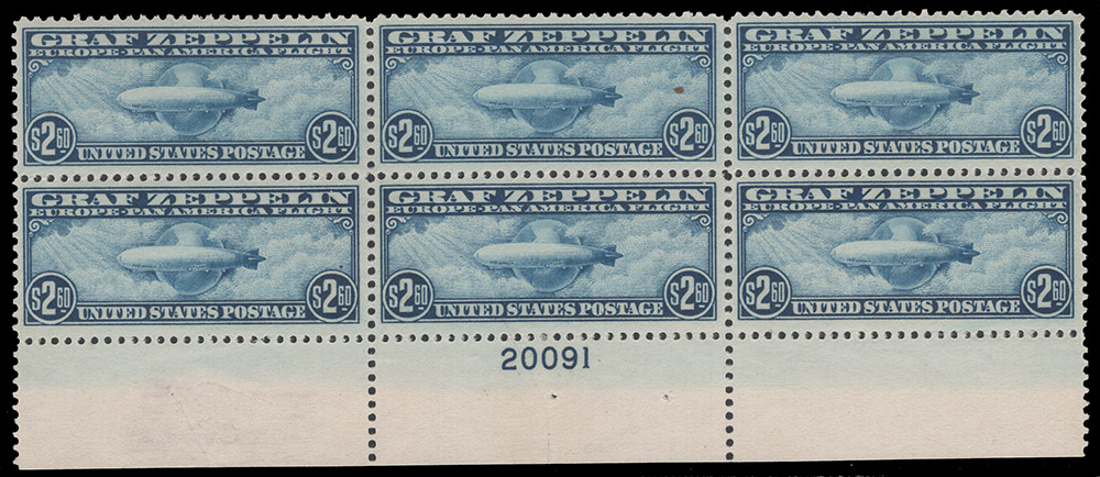 PLATE #20091 BLOCK OF SIX MINT NEVER HINGED,, #C15, fresh and well-centered, very fine, cat. $8,000.00 (Image) |