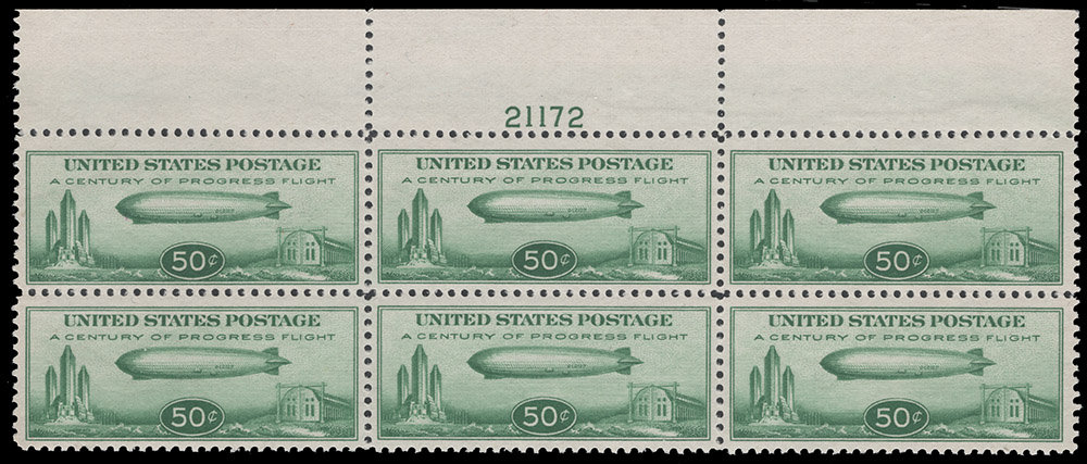 1933, 50c CHICAGO ZEPPELIN TOP PLATE #21172